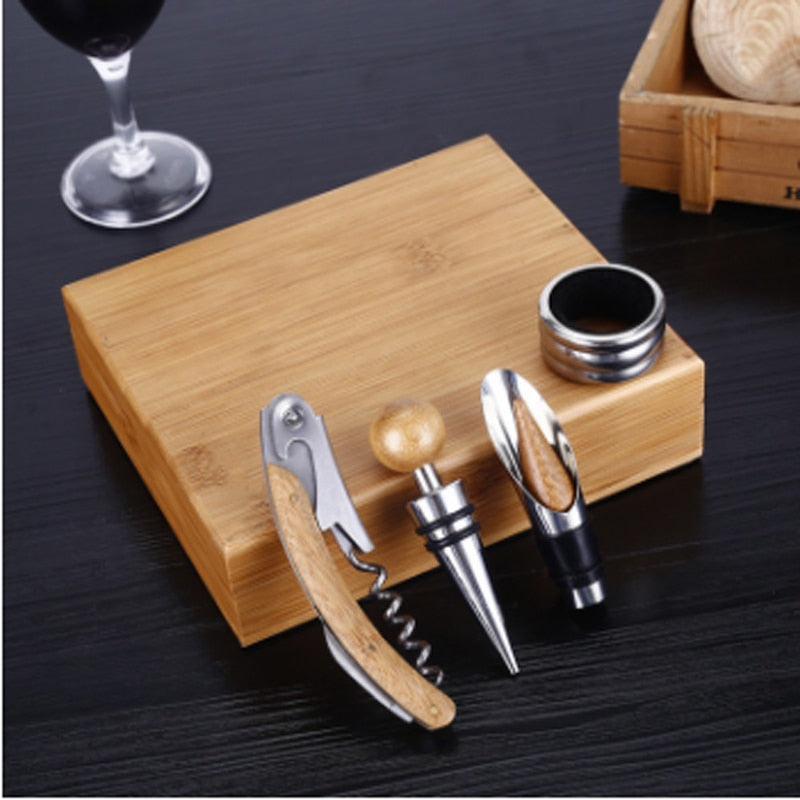- O Kit de Ferramenta de Vinho 4 Peças é um conjunto completo que inclui um abridor de vinho multifuncional, Wine Pourer com rolha, Wine Drip Collar e stand alone Wine Stopper. Com essas ferramentas, você estará pronto para desfrutar de um bom vinho em qualquer ocasião.
